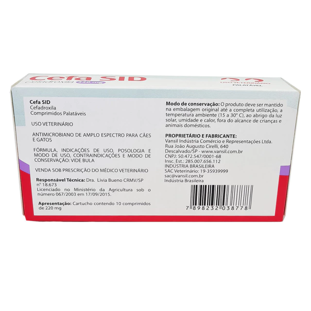 Descrição do Cefa Sid Antimicrobiano para Cães e Gatos